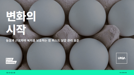 LRQA의 농장 보증 스킴인 Farm First는 동물 및 근로자의 복지와 지속가능한 목표를 달성할 수 있도록 지원하는 LRQA의 보증 제도 입니다. 이번 브로셔에서는 달걀 관리 표준을 확인하실 수 있습니다.