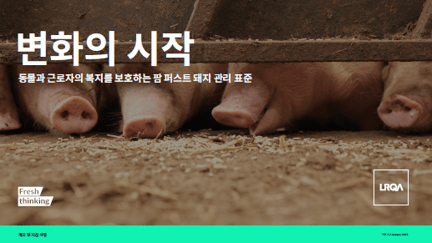 LRQA의 농장 보증 스킴인 Farm First는 동물 및 근로자의 복지와 지속가능한 목표를 달성할 수 있도록 지원하는 LRQA의 보증 제도 입니다. 이번 브로셔에서는 돼지 관리 표준을 확인하실 수 있습니다.
