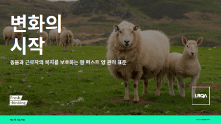 LRQA의 농장 보증 스킴인 Farm First는 동물 및 근로자의 복지와 지속가능한 목표를 달성할 수 있도록 지원하는 LRQA의 보증 제도 입니다. 이번 브로셔에서는 소 관리 표준을 확인하실 수 있습니다.